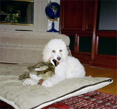 Emmy all dried off, enjoying a well deserved rest after her long day!