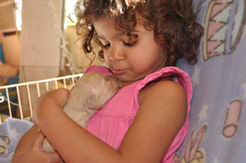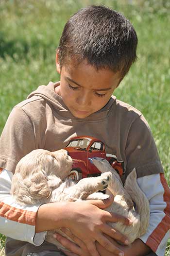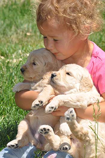 Our children take their roll as puppy cuddlers seriously! Our puppies are raised to be extremely comfortable with young children. Our passion is raising puppies that do especially well in homes with young children due to their sweet, reliable and intelligent dispositions. We feel that there is something very special about the memories created in growing up with a dog as your best friend.