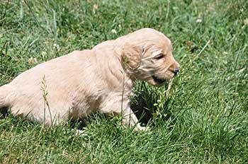 We release our puppies when they are between ten and twelve weeks.  We believe that this extra time with their momma and siblings greatly improves their readiness to transition to your home.  While keeping our puppies longer is a great deal of work for us, it has other benefits for your puppy as well.  It gives us extra time to give them their vaccines without having to administer them early which can cause immune disorders later in life.  They are further along in their crate training so you don't have to have so many sleepless nights listening to your puppy cry when they first come home.  All of our puppies are fully crate trained, sleeping eight hours by the time we release them.