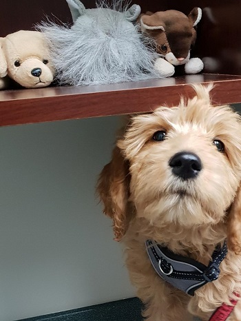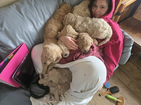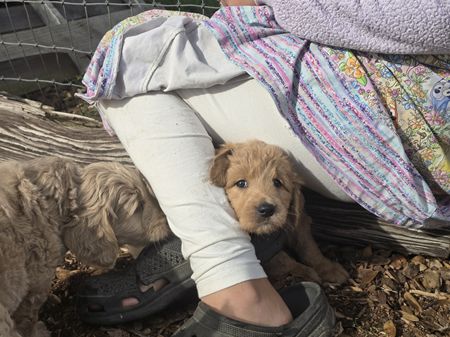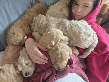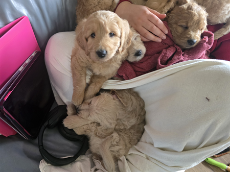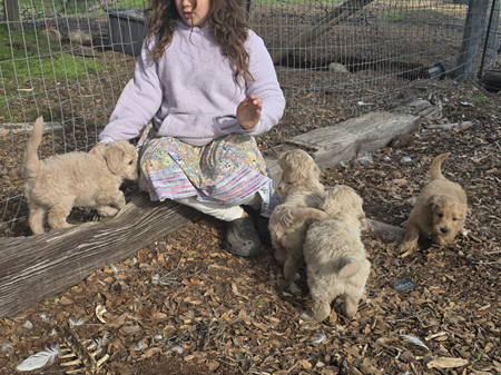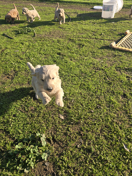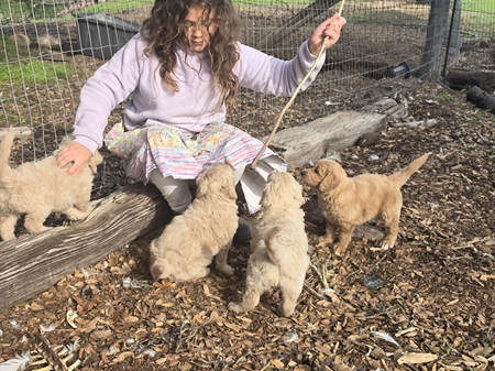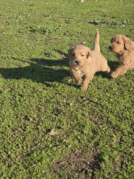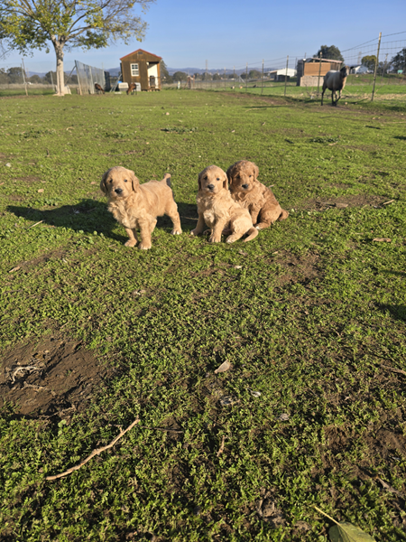 I thought you would enjoy seeing these pictures of our medium sized Goldendoodles grown up.