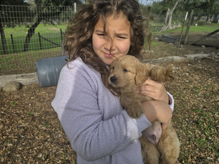 Miles is a happy, light-hearted Goldendoodle with a joyful spirit that seems to bring smiles wherever he goes. He has an easy, friendly way about him that makes people feel instantly comfortable — the kind of puppy who feels like a best friend almost from the moment you meet him.