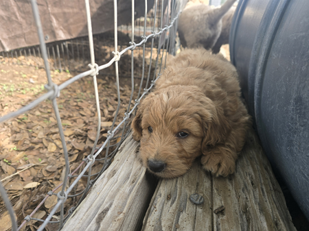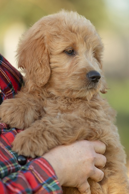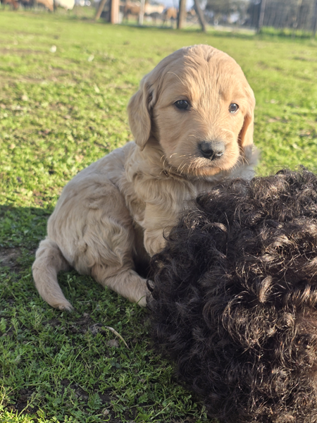 Theo is a gentle, thoughtful Goldendoodle with a calm, observant nature and affectionate heart. He takes in the world with soft curiosity, an intelligent puppy who thinks things through!