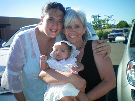 Mommy, our precious midwife and friend Lenny Sue and Hannah Grace. This day was such a blessing, Lenny Sue who's from Tahoe was able to make it to Hannah Graces dedication at our church in Santa Rosa. 5-08