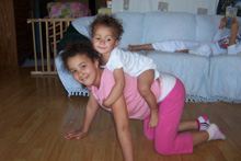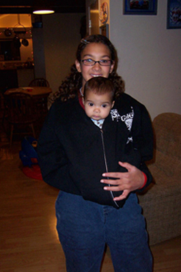 Rebekah and Hannah Grace where she likes it best, bundled up in someone's arms! October 08