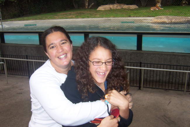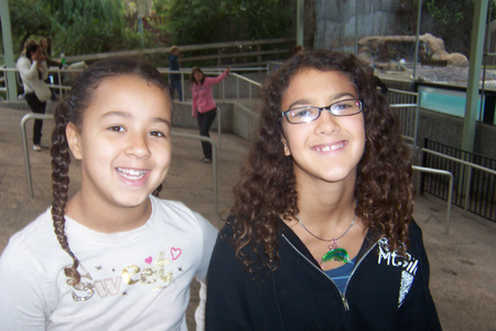 Rebekah and Danielle looking at the tigers in Marine World. November 08