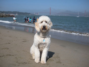 We are so appreciative for Pebbles. He's a real sweetheart, and become a vital part of our family. Everyone he meets comments on his gentle disposition. My son is still feeding and walking him every day, and loves having his "brother" Pebs. Jesse, Cabo, Pebbles and I can be found most weekends hiking on Mt. Tam or at the beach - Cabo and Pebbles have become the best of friends.