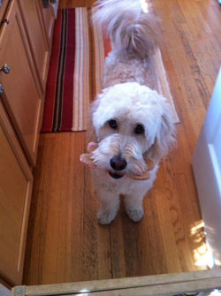 I attached some pictures of him for you. I've had so many people ask me where I got him, even our vet asked for your info. I've seen other Goldendoodles around but he has the best personality and he's absolutely the cutest dog around!