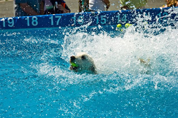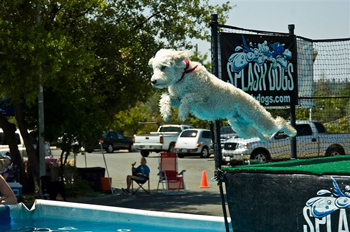 This is Caleb at our local Sonoma County Fair Dock Diving Event. He's sired by our boy Jacques and raised by our friend and fellow doodle breeder Lynn Fleck.