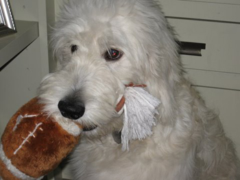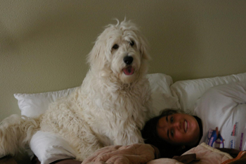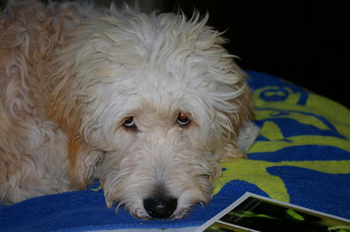 I hope this note finds you well. My name is Rick Canny. I purchased a pup from you 4 years ago. I think today (give or take a day) would actually BE Curly's birthday!!!! I wanted to share a couple pics with you to see the loving, beautiful animal that has blessed my life and the life of those around me. You probably wouldn't remember, but I flew up to Oakland Airport around November 23, 2004 and picked him up from you. You actually came to the airport and met me there and I brought him home to Southern California . He's the sweetest creature. |