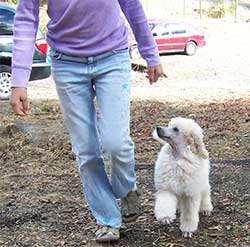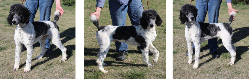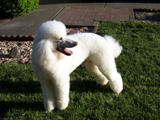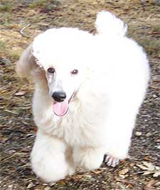 Jacques is an AKC Registered white Standard Poodle. He weighs about 65 pounds and is 27 inches at the shoulder. Jacques is an extremely handsome, well put together boy, his dad is the 1999 World Champion. He's also extremely intelligent, one of the smartest dogs I've ever met. While he's a dignified old man, he loves to clown around and is always making me laugh. He will do anything to get you to smile. Jacques is a mellow and sweet boy, he's been a well behaved gentleman since he was a puppy! He's a cuddler, as big as he is, he will try to curl up in your lap for a good snuggle! Jacques is OFA Good, OFA Heart Normal, CERF Normal and VonWillibrants Normal.