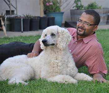 Manna is an AKC Registered white Standard Poodle. We just couldn't choose! Manna and his brother Noble were our pick of litter boys from Jacques/Gwens litter. Manna is a loves everyone kind of guy. Everyone he meets is his immediate best friend and he shows it by flashing you a big doggie grin and sticking close to your side both of which traits he got from his dad Jacques. While Manna loves everyone, he has an especially sweet connection with children, even ones that tend to be timid with dogs. He's highly intelligent and intuitive and seems to know who is up for playing ball and who wants him to sit by their side quietly. Manna was born and raised with us. His puppies make excellent therapy and service dog prospects. Manna is OFA Good, CERF Normal, OFA Heart Normal, S.A. Normal and Thyroid Normal. Both is mom and dad are tested as well. Manna's puppies range in size from 50-85 plus pounds.